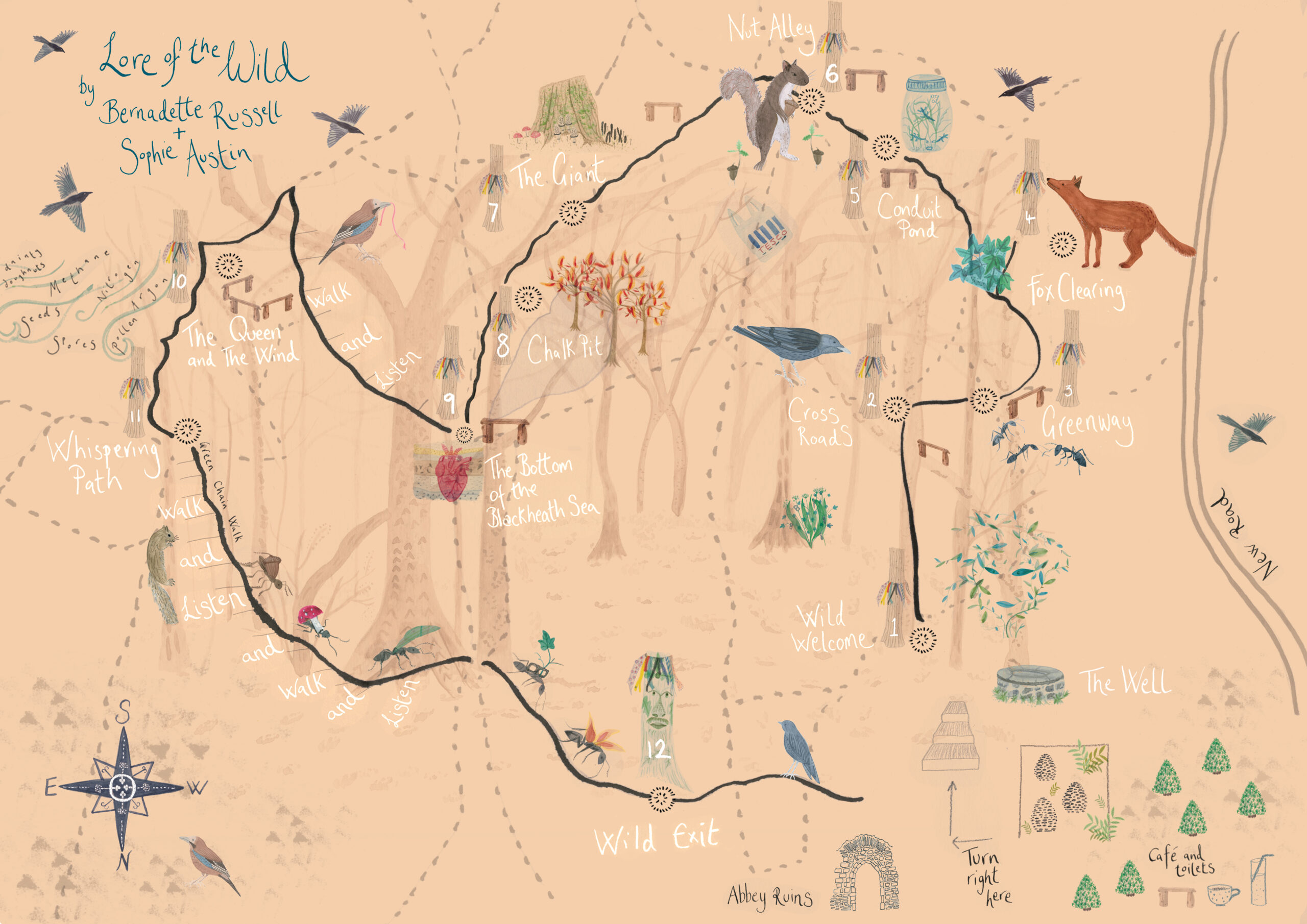 Lore of the Wild is a series of 12 pre-recorded stories accompanied by a beautiful soundtrack co-created by Bernadette Russell and Sophie Austin with sound design by Hannah Marshall and map design and illustration by Melanie Smith. These enchanting stories are all about Lesnes Abbey Woods and you can listen to them on your smartphone as you follow the route on a map which you can pick up for free from the café or by downloading via the button below.
